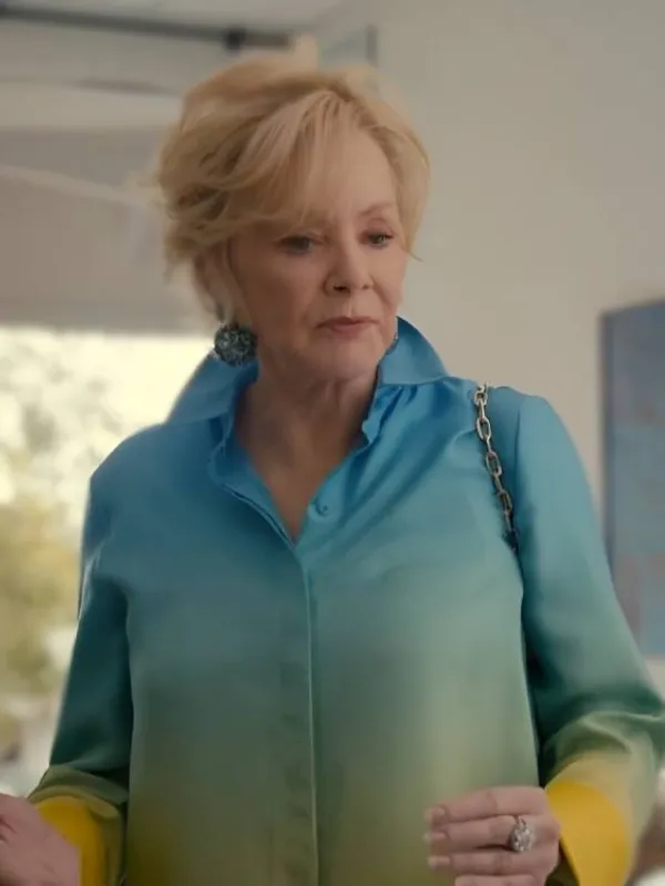 Hacks Season 3 Jean Smart Ombre Shirt made from silk, the shirt offers a breathable and tender touch in opposition to the skin. A row of buttons runs down the the front, permitting clean wear and adjustment. The collar sits flat in a traditional form, preserving its line without adding weight. Long sleeves reach the wrist and give up with buttoned cuffs that stay cozy while allowing small motion. The surface flows from light yellow into soft blue, developing an Ombre effect that keeps the layout calm however no longer plain. With its clean material and quiet shade shift, the shirt brings consolation and constant style collectively. Each part is fashioned to guide smooth wear across one-of-a-kind settings, making it beneficial for both inside moments and outdoor mild layers.