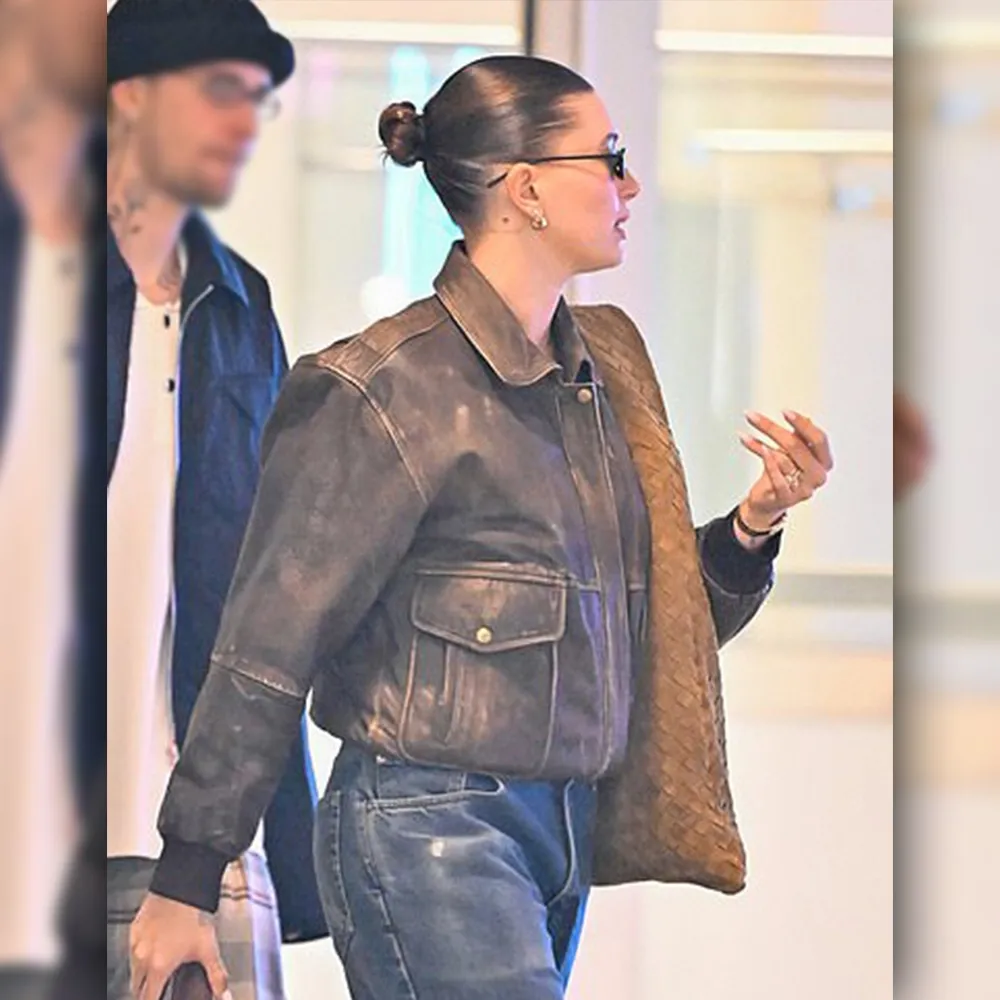 Hailey Bieber Los Angeles Leather Bomber Jacket