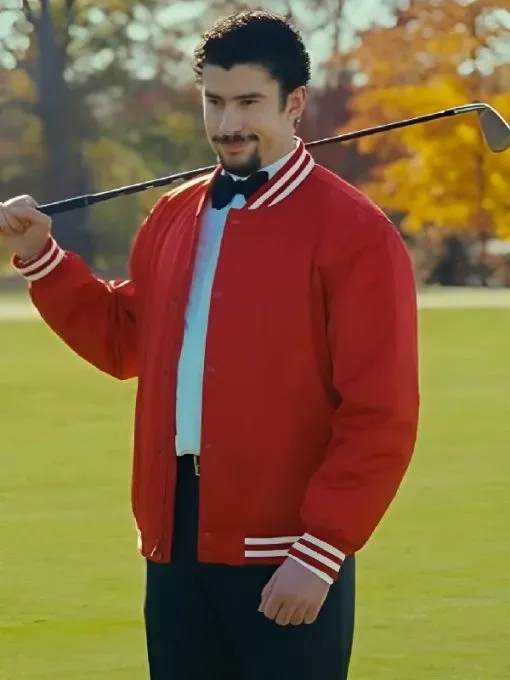 Bad Bunny’s daring fashion sense and unafraid demeanor infuse Happy Gilmore 2 with a new and exciting vitality. The character of Bad Bunny, who is well-known for his distinct sense of style and charming personality, adds a humorous twist to the sequel. The Happy Gilmore 2 Varsity Jacket he dons throughout the movie is among his most noticeable appearances. This jacket gives him a sporty yet fashionable edge and reflects his self-assured and rebellious personality. This red jacket becomes a representation of his iconic performance in the film, whether he is setting up a scene on the golf course or making a dramatic entrance.