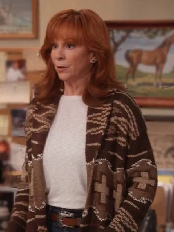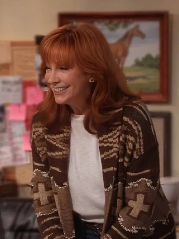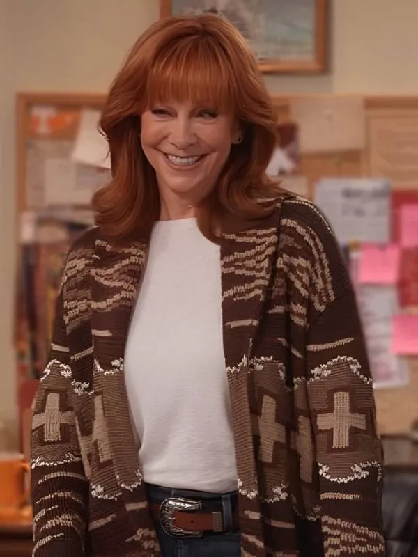 Happys Place Season 2 Reba McEntire Brown Knitted Print Cardigan