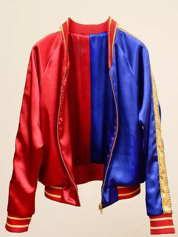 The jacket is composed of a smooth, light, and shiny satin fabric. For all day comfort, it features a soft viscose lining inside. For ease of wear, the front has a sturdy zipper closure. It fits snugly thanks to the rib knit collar and cuffs, which also enhance the sporty look. Additionally, it features two side waist pockets for holding small items or keeping your hands warm. Like Harley’s in the film, the jacket has a striking red and blue color scheme. It has personality, style, and fun. This is a great option if you want a stylish jacket with movie flair or are dressing up as Harley Quinn.