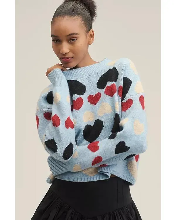 This light blue sweater with heart icons was inspired by a well-known celebrity who had a carefree sense of style and a cheerful attitude. She has gained admiration for her friendly disposition and love of comfortable yet stylish apparel. Simple patterns, delicate colors, and whimsical details that are wearable and feel natural are often highlighted in her wardrobe choices. This Heart Icons Crew-Neck Blue Sweater reflects that same carefree and joyful style. It is perfect for women who enjoy incorporating a fun and lively element into their everyday outfits. The sweater’s colorful heart icons give it a lively look without sacrificing its harmony and simplicity. This piece, which is inspired by celebrity style, gives everyday clothing coziness, charm, and a fresh vibe, making it suitable for relaxed get-togethers, informal outings, and comfortable days at home.