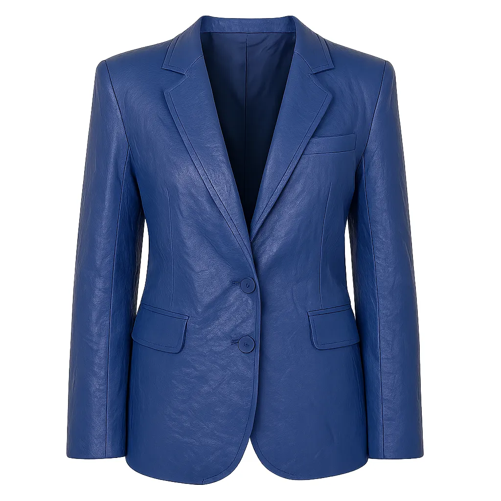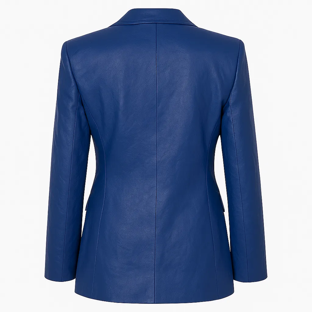 Featuring a lapel style collar and a buttoned front closure, it presents a polished silhouette, while the full-length sleeves contribute to a sleek and refined appearance. The viscose lining inside ensures smooth, breathable wear, making it ideal for all-day styling. Its vibrant blue hue introduces a modern, eye-catching element, effortlessly pairing with skirts, trousers, or dresses, thus serving as a versatile and chic wardrobe essential. By merging functionality with contemporary style, the Kaitlin Olson High Potential S2 Morgan Gillory Leather Blazer enhances any outfit through its expertly tailored design and luxurious materials. The structured fit accentuates the feminine silhouette, while the careful craftsmanship evident in the lapels, buttoned closure, and overall finish showcases quality and meticulous attention to detail.