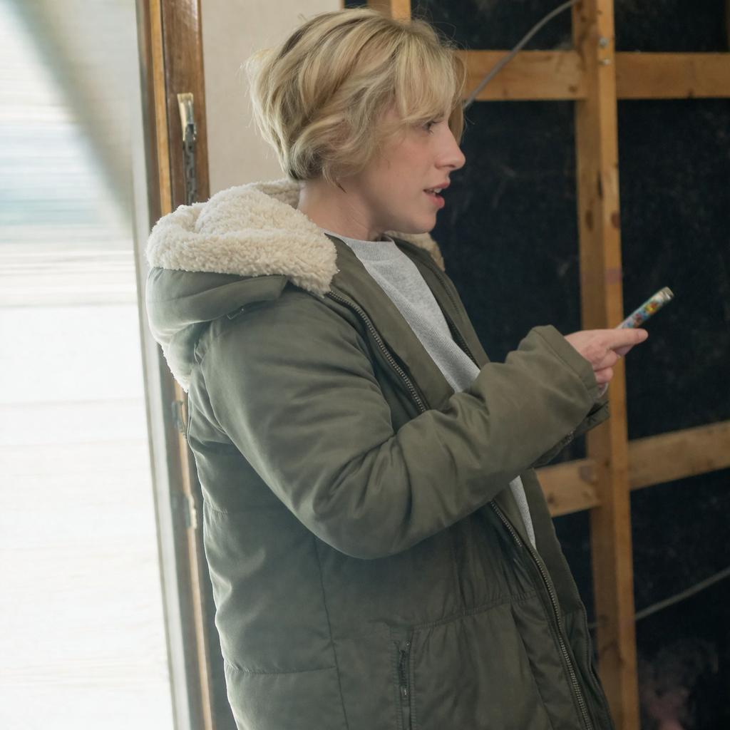 Home Town S10 Host Erin Napier Green Puffer Coat