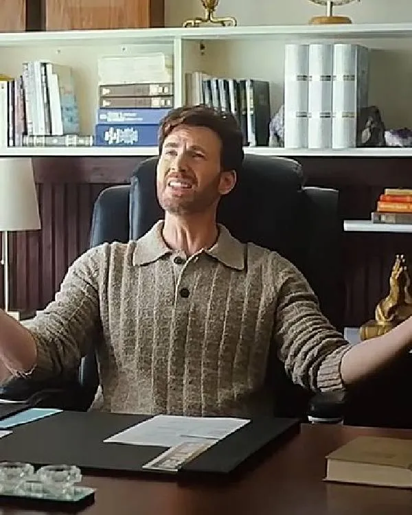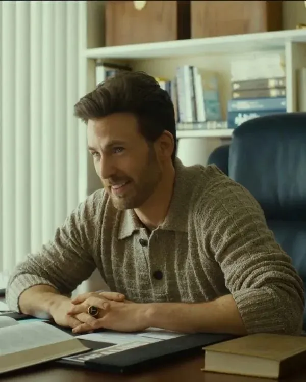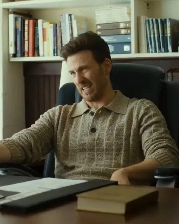 In Honey Don’t!, Chris Evans exudes confidence and charm on screen, and his attire gives the character even more individuality. The light brown polo shirt is one of his most distinctive outfits; it gives him a laid-back yet elegant look. It maintains everything stylish and current while showcasing a more relaxed aspect of his personality. His personality is well suited to the shirt’s gentle earthy tone, which makes him seem friendly and approachable. Fans admired how his role was defined by this understated yet sophisticated ensemble, which gave him a relaxed and natural appearance throughout the movie.