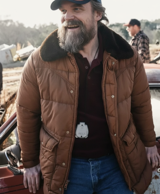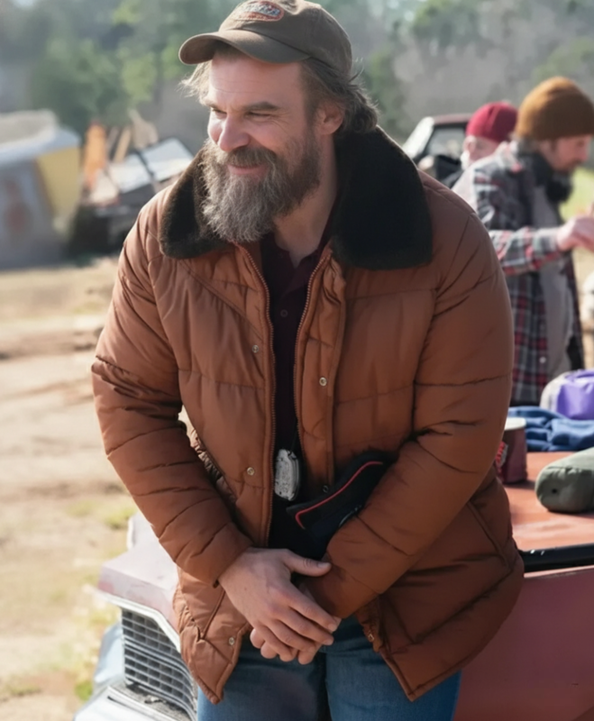David Harbour’s memorable depiction of Jim Hopper in Stranger Things has enchanted viewers globally, not only due to his engaging performance but also because of his effortlessly stylish appearance. As the police chief of a small town facing suspenseful and emotional challenges, Jim Hopper’s clothing has emerged as a distinctive feature of the series. Both fans and fashion aficionados have recognized his rugged yet functional jackets, which inspire garments that blend on-screen allure with everyday practicality. The Hopper Stranger Puffer Jacket embodies this essence flawlessly, allowing you to embody Hopper’s self-assured, adventurous style wherever you may go.