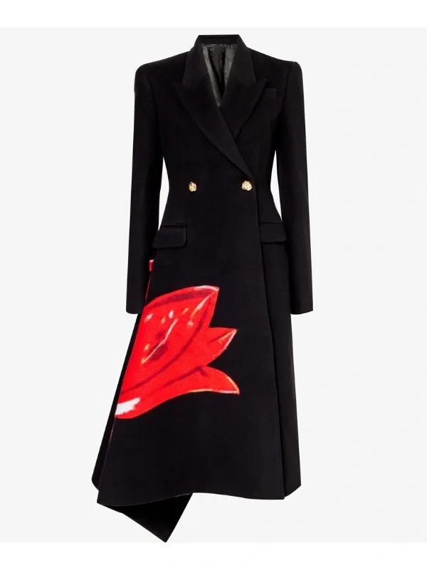 Abigail Jones 2025 Black Floral Asymmetric Coat
