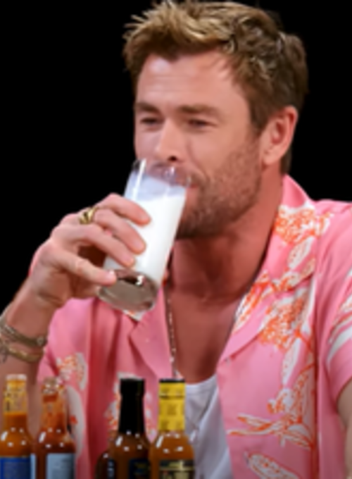 Hot Ones Show Chris Hemsworth Pink Viscose Shirt