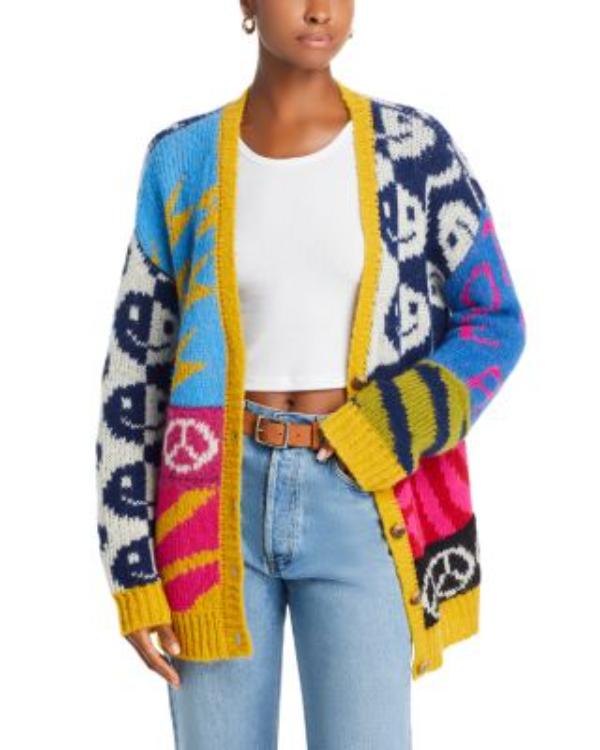 TV-Series House of Villains S03 Kate Chastain Multicolor Smileys Printed Cardigan