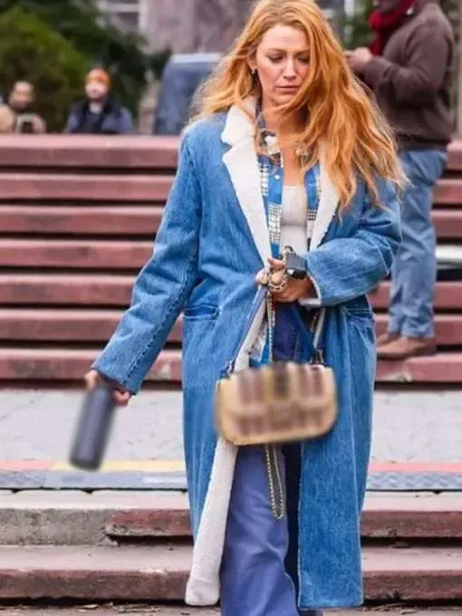 Blake Enthusiastic is assuming the a part of Lily within the film, and goody gumdrops, would possibly she say she is first class? All that extra or much less her person is immensely exceptional; be it her depiction of the individual, articulations, non-verbal verbal exchange or possibly her outfits. It Finishes With Us 2024 Blake Enthusiastic Blue Denim Shearling Coat is unequivocally what each Blake fan needs to capture onto. The shearling indent lapel format neckline, the front mounted conclusion, prolonged sleeves with open restore sleeves and welt wallet on the midriff are the primary highlights of the coat. The exquisite tones are the spotlight of the clothing.