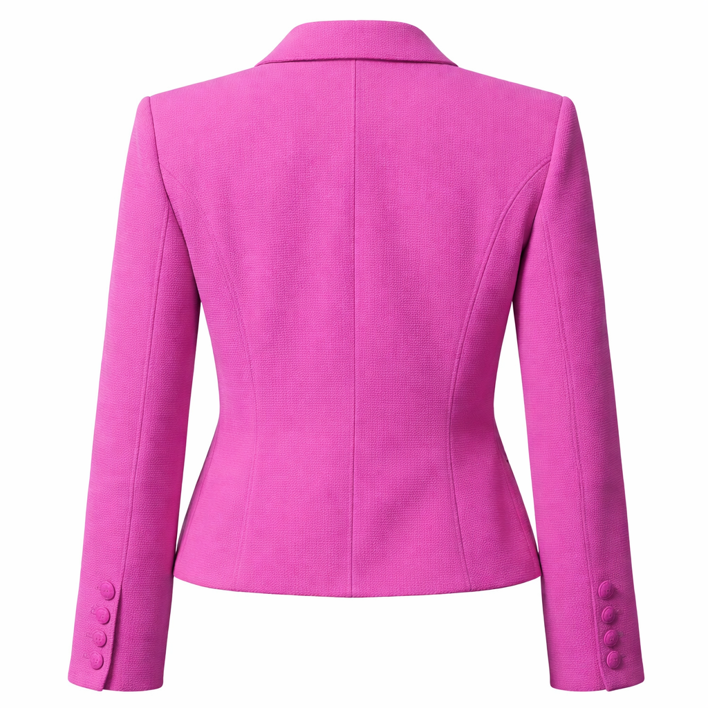 This pink blazer is composed of high-quality, smooth-feeling suiting material. It is comfortable to wear for extended periods of time because of the viscose lining inside. Erinn Hayes Pink Blazer has a peaked collar that gives it a polished, sophisticated look. A buttoned closure on the front ensures a tidy and safe fit. A timeless style that is appropriate for all seasons is offered by full-length sleeves. Additionally, it has two inside pockets and three outside pockets, providing ample room to store your small belongings. It is ideal for business wear, meetings, or informal get-togethers because of its soft pink hue, which exudes style and freshness. This blazer is a fantastic option for anyone seeking a straightforward yet sophisticated style.