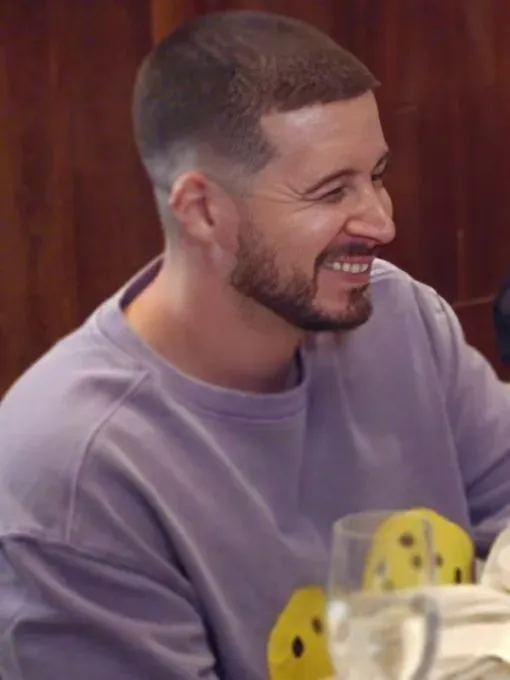 Vinny Guadagnino’s signature charm and humor are evident in Jersey Shore Family Vacation Season 8, and his sense of style reflects this easygoing demeanor. Vinny is renowned for combining bold colors with streetwear and is not scared to stand out. One of the highlights of the season is the Purple Smiley Face Sweater, a stylish yet entertaining addition to his wardrobe. Vinny’s easygoing style and carefree attitude are reflected in the popular happy smiley face print. Whether he is relaxing at the shore house or joking around with the crew, this sweater is the perfect addition to his casual yet fashionable wardrobe.