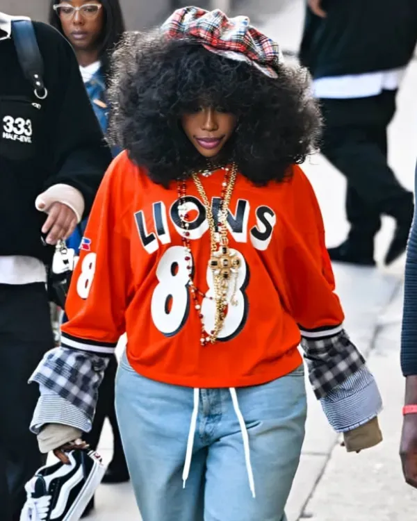 Jimmy Kimmel Live Singer SZA Red Sweatshirt is crafted from tender fleece material, this red sweatshirt ensures consolation at the same time as retaining you warmth throughout cooler days. The fleece cloth is slight on the pores and skin and presents a secure sense, making it ideal for lounging or running errands. The quick sleeves provide a secure wholesome, thinking of clean movement. The pullover fashion makes it clean to slip on, at the same time as the rounded collar gives the sweatshirt a classic look. The ambitious white lettering and numbers at the the front upload a contemporary twist, making it stand out as a elegant declaration piece. This sweatshirt is designed to be both practical and fashionable, offering a comfortable healthy at the same time as keeping you on-style.