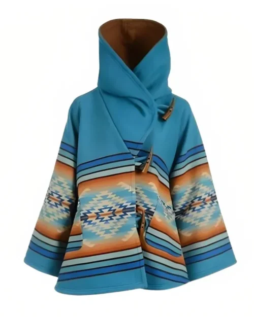 I ordered this coat for myself, and it’s my new favorite. The wool fabric is cozy and lightweight. The ancient button closure adds character. The hooded collar is practical for colder days. The blue color matches so many outfits.