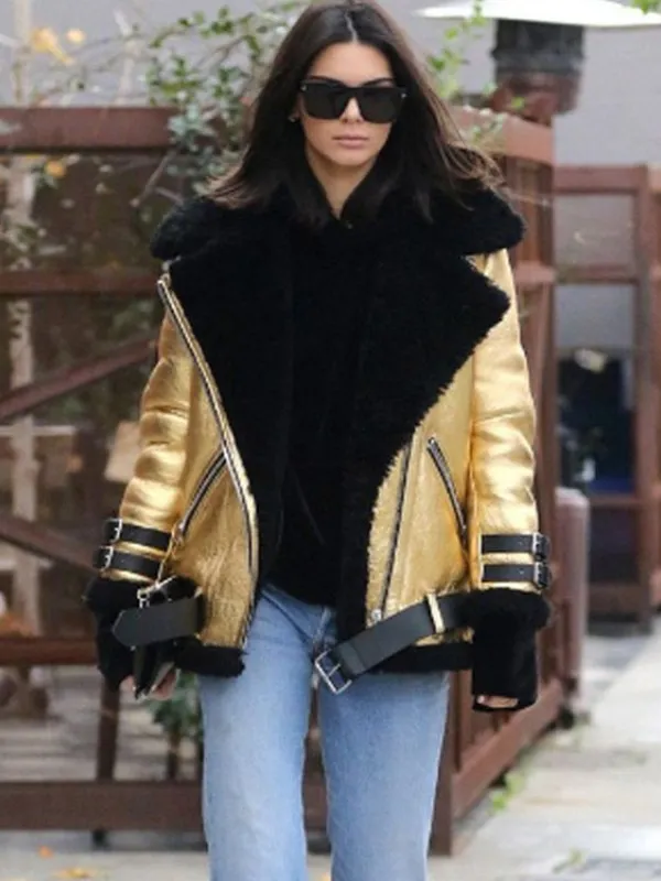 Kendall Jenner, an American model, is well known for her self-assured manner and contemporary sense of fashion. She frequently wears stylish attire that quickly gains popularity among fashionistas. She is a powerful style icon for the younger generation because of her combination of bold and elegant looks. For those who value gaudy outerwear, Kendall’s fashion choices are an inspiration. She can effortlessly pull off any ensemble, whether it is a sophisticated appearance or a laid-back street style. Her ability to transform Kendall Jenner Golden Shearling Leather Jacket into striking fashion pieces has won her a lot of accolades. Because of her influence, people all over the world still seek out and value clothing that is inspired by her style.