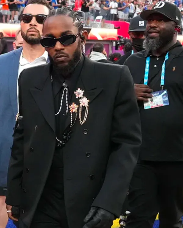 For Super Bowl Halftime 2022, the rapper Kendrick Lamar Super Bowl Halftime Blazer is a premium wool combo ensuring warmth and luxury. The outer layer is crafted with wool which guarantees comfort and heat. The gentle viscose lining on the inside adds more coziness. A notch lapel collar gives a chic touch, at the same time as a front double-breasted button closure provides to the trendy design. Long sleeves with open hem cuffs whole the polished look. Two flap wallet on the waist and two inner pockets provide space for necessities. Because of its ambitious black color, it is able to be perfectly paired with any other color and is appropriate for formal events or trendy outings.