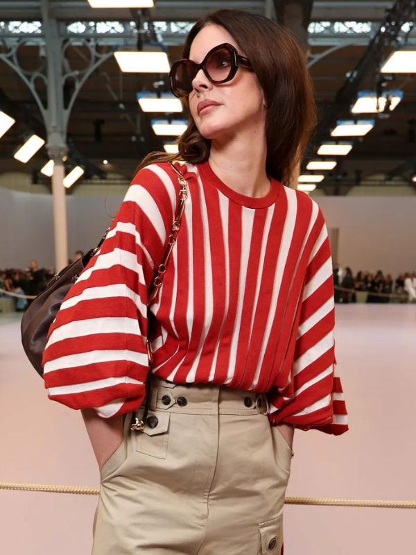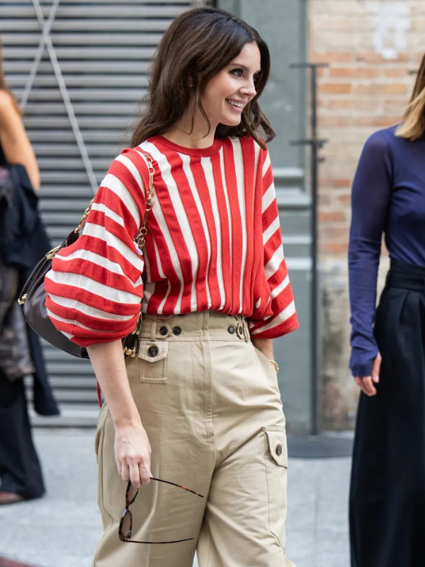 Lana Del Rey Paris Fashion Week 2025 Red & White Striped Shirt