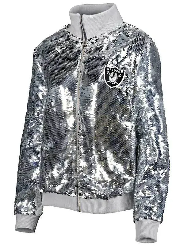Las Vegas Raiders Silver Sequin Jacket Las Vegas Raiders Silver Sequin Jacket