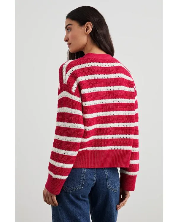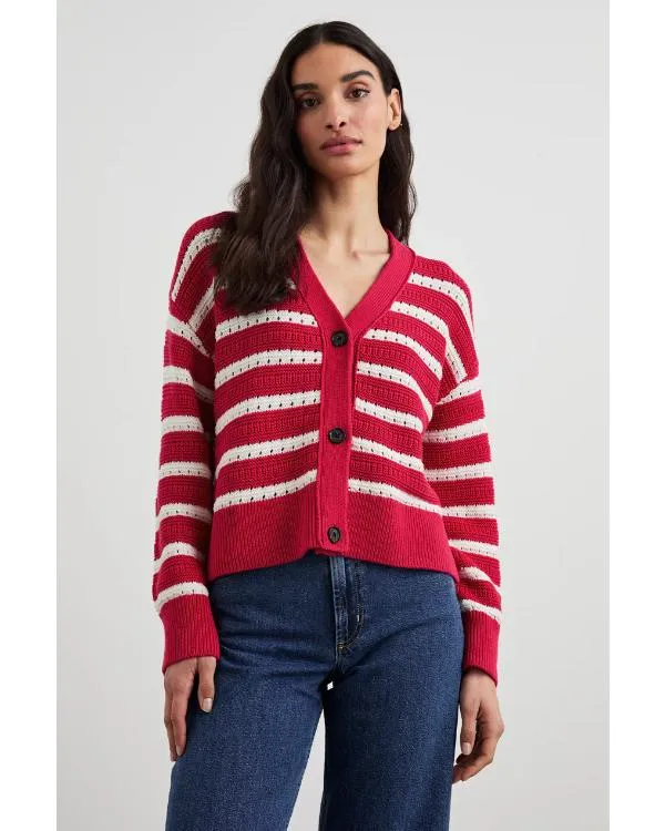 The soft knit fabric used to make this cardigan is kind to your skin. It has a tidy appearance thanks to its traditional cardigan collar. You can choose whether to wear the buttoned open style open or closed. Your arms will stay warm thanks to its long sleeves. To keep cold air out, the rib-knit cuffs fit snugly around your wrists. The striped pink adds a playful and novel touch. Wearing and styling this cardigan with dresses, skirts, or jeans is simple. For any wardrobe, it is the ideal balance of color, style, and comfort.