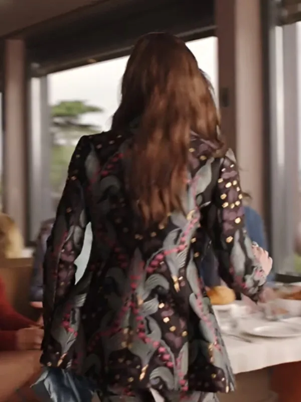 Actress Lily Collins is well-known throughout the world for her exquisite style and elegant charm. She is praised for her ability to confidently and elegantly carry bold styles. She is a great source of inspiration for women who enjoy expressive fashion because her wardrobe selections frequently showcase originality, color, and contemporary styles. Lily’s style is distinctive because she creates looks that feel modern and fashionable by fusing traditional tailoring with whimsical designs. According to her, fashion should be enjoyable, self-assured, and cozy all at once. Many fashion enthusiasts who like to stand out while maintaining a polished appearance have been influenced by her ensembles over the years. Her vivid sense of style is reflected in this Lily Collins Emily In Paris S04 Floral Blazer is ideal for ladies who enjoy incorporating color and individuality into their ensembles. It is a straightforward yet striking symbol of self-assurance, inventiveness, and contemporary elegance.