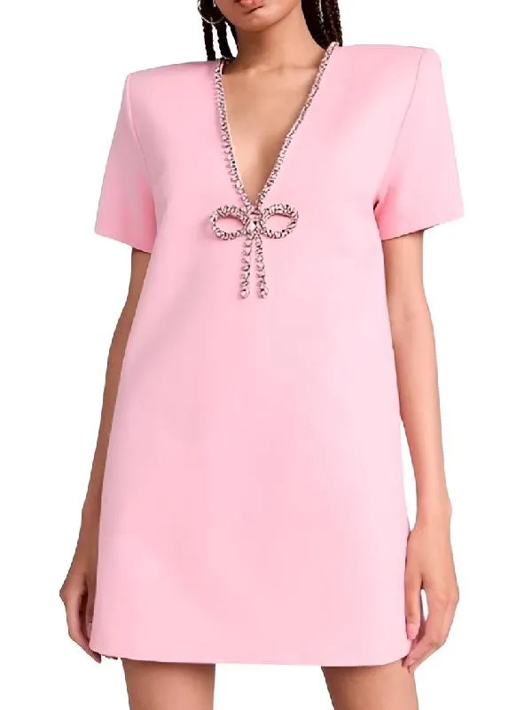 Love Hotel S01 Shannon Beador Embellished Bow V-Neck Pink Dress