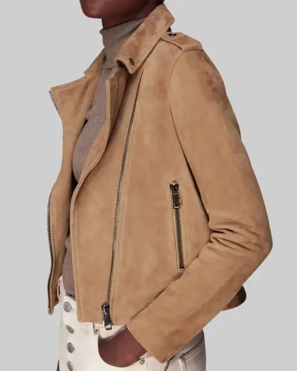 Crafted from high-quality suede leather, the jacket boasts a luxurious feel and a durable build. The meticulous stitching and attention to detail reflect excellent craftsmanship, ensuring the jacket maintains its shape and appearance over time.