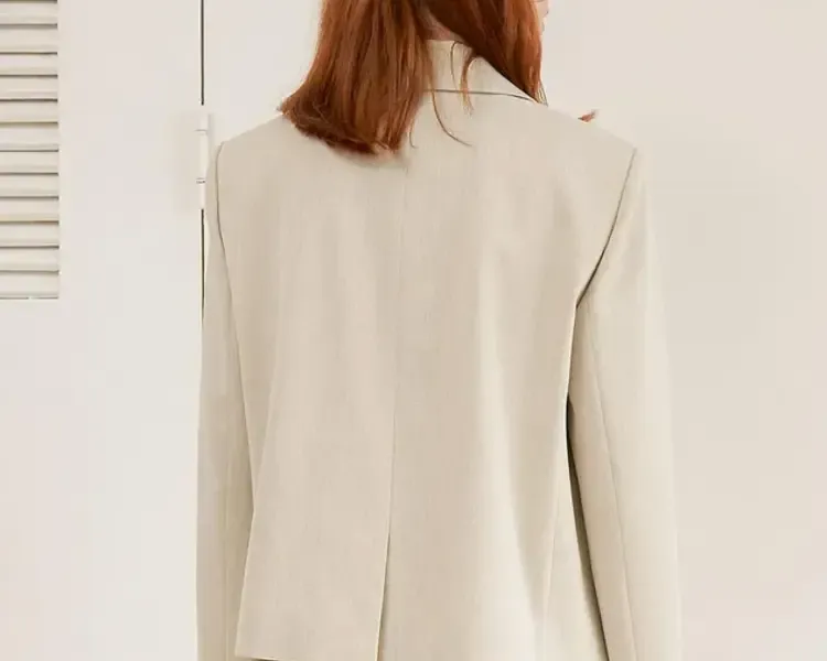 This tailored outfit offers a sharp, refined look with its clean lines and professional appeal. The set is well-suited for formal events or business wear. Its neutral tone adds to its versatility, making it easy to pair with other wardrobe essentials.
