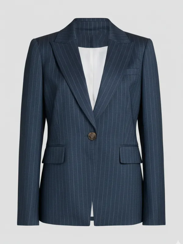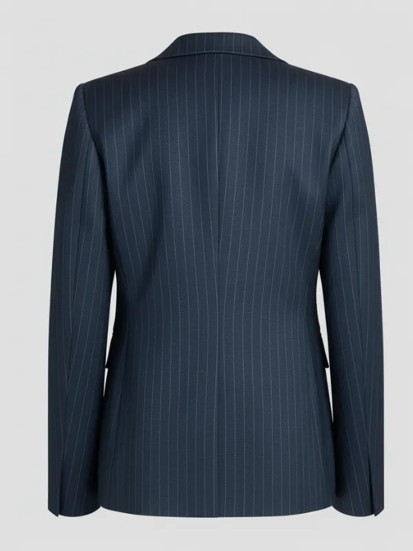 This Maddie Kendall Blazer is made from high-quality suiting fabric, featuring a soft viscose lining for enhanced comfort. It has a buttoned front closure and an elegant lapel collar, offering a modern and polished look. The blue pinstriped design adds a professional touch, making it ideal for office environments, meetings, or smart-casual occasions. It comes with three front pockets and one interior pocket, effectively merging style with functionality. With its full-length sleeves and tailored silhouette, this blazer is a must-have for anyone looking to dress with confidence, much like Maddie Kendall.