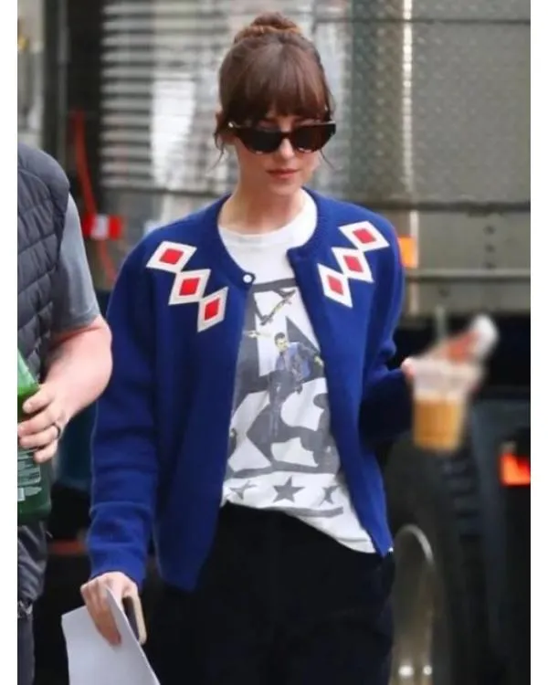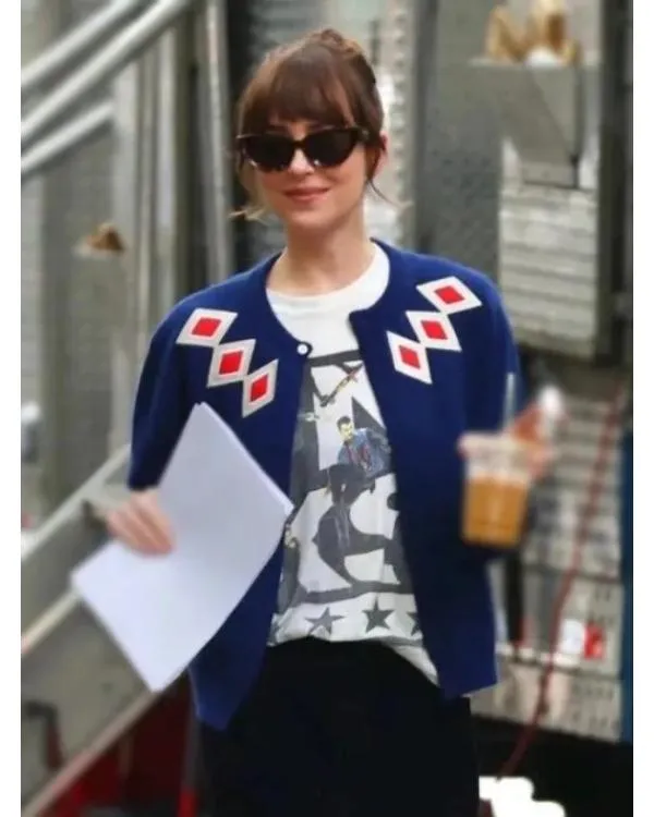 The Lucy Film Materialists 2025 Dakota Johnson Blue Argyle Cardigan is crafted from tender and comfy knitted cloth. It features a traditional button closure on the the the front, making it clean to position on. The cardigan comes with a rounded style collar that provides a hint of beauty. The full sleeves offer warmth and coverage, at the same time as the rib-knitted cuffs offer it a comfortable in shape. This cardigan is designed in a lovely blue color with a latest argyle sample, perfect for informal outings or comfortable days at domestic. Stylish and flexible, this piece is a top notch choice for every person in search of to add a touch of film-stimulated fashion to their dresser.