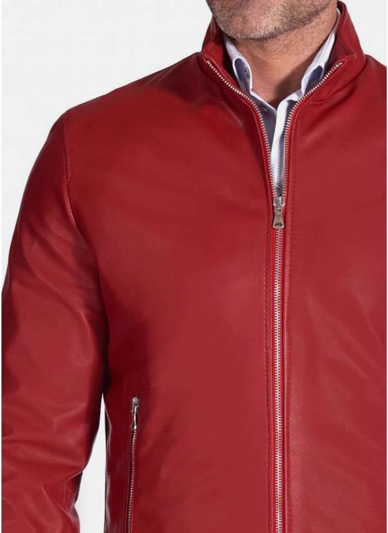 The rich red hue exudes confidence and style, while the bomber design adds a touch of ruggedness. Crafted with precision and attention to detail, this jacket not only looks great but also keeps you comfortable. The genuine leather construction ensures durability and longevity.