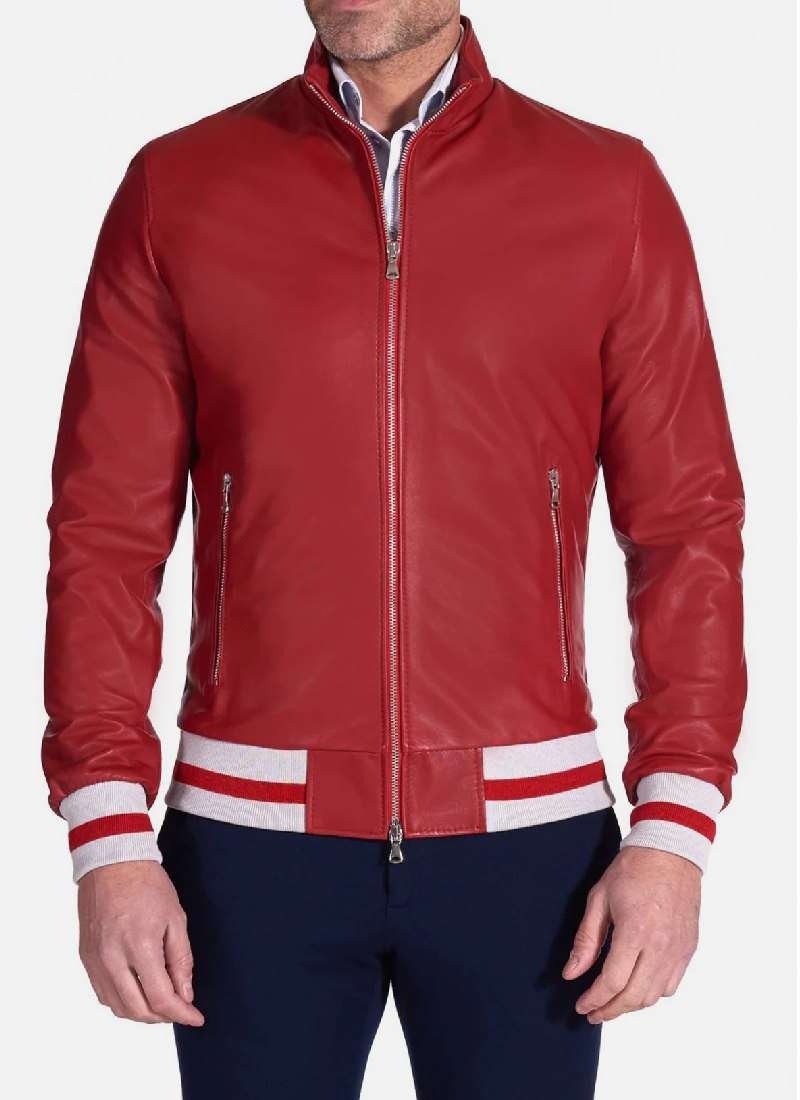 Celebrate Your Style with Our Authentic Red Bomber Leather Jacket