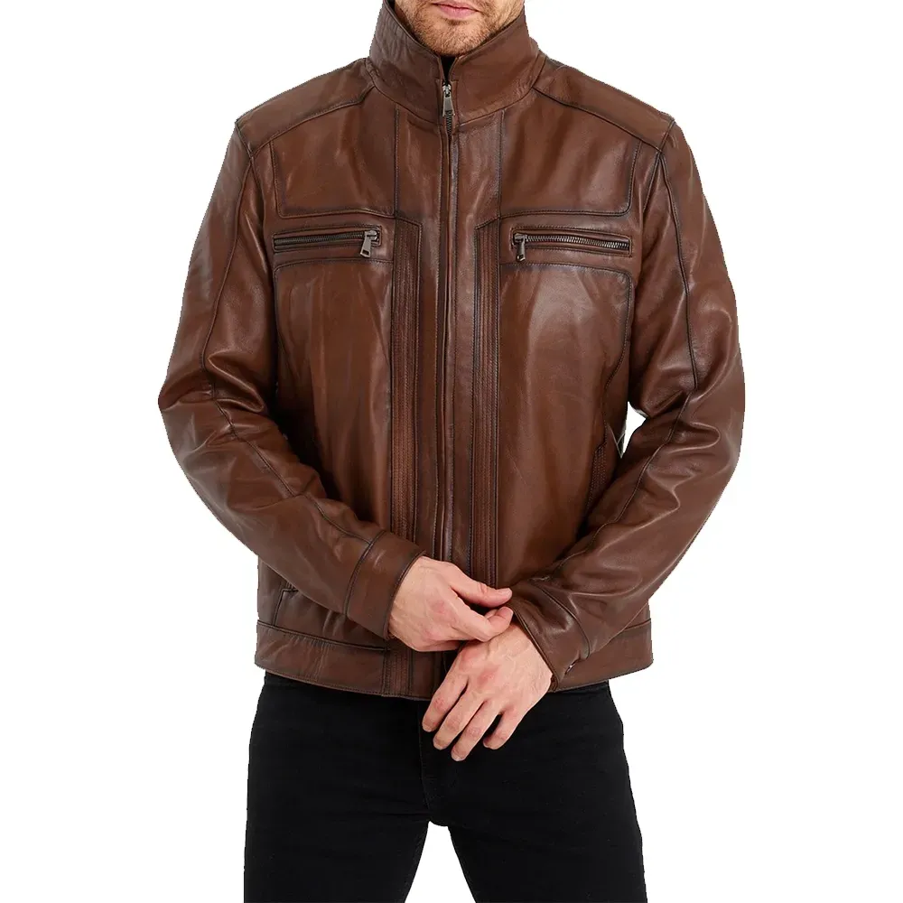 A timeless and classic look that is always in style is added by the Men Brown Bomber Jacket. This jacket is perfect for both casual get-togethers and a stylish evening look because of its polished yet rugged appearance. The bomber design adds a hint of vintage charm, and the brown leather finish gives it a versatile appeal that complements many different types of clothing. Whether you want to dress up or keep it casual, this jacket easily improves your appearance without sacrificing comfort.