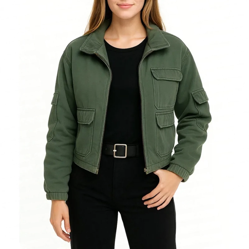 It’s perfect for casual wear or even a night out. The stand-up collar gives it a cool vibe.
