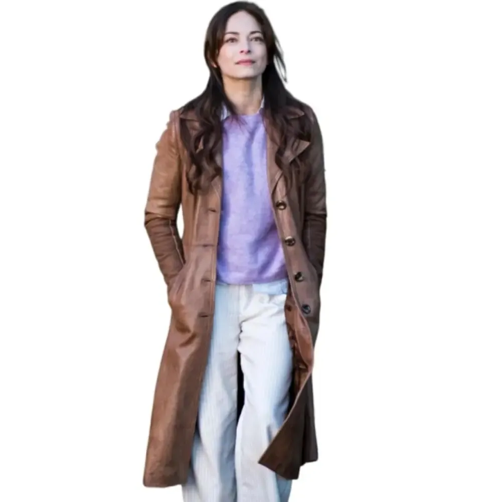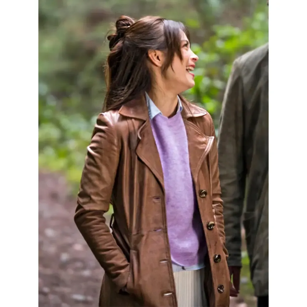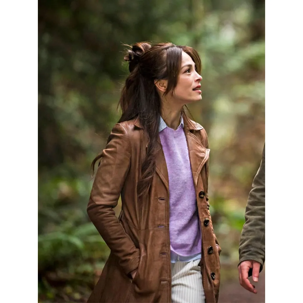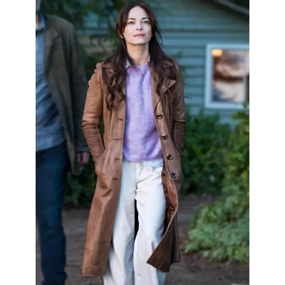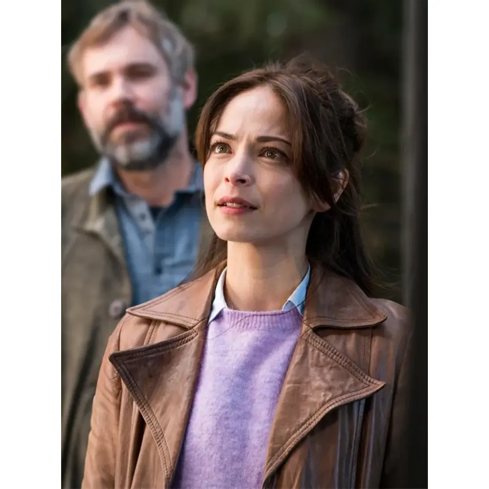 Kristin Kreuk Murder in a Small Town Cassandra Lee Brown Leather Trench Coat