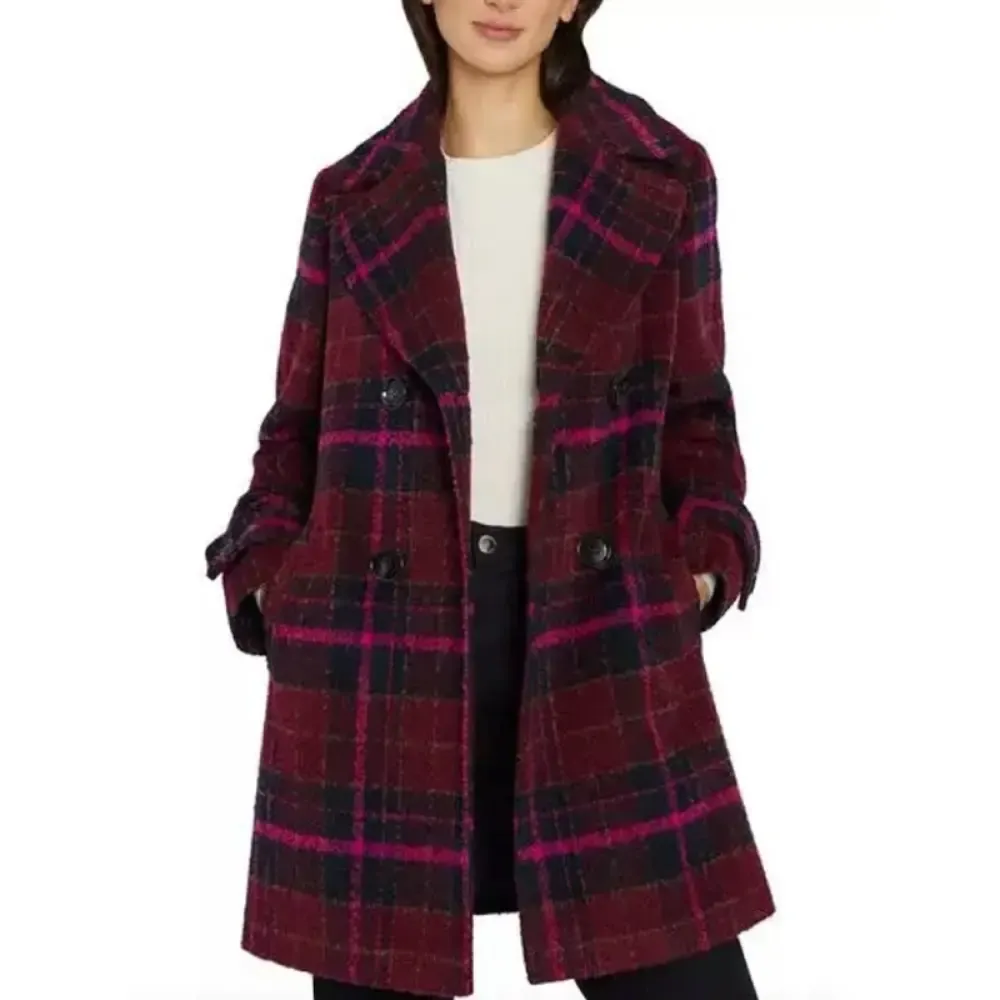 The Murder in a Small Town Zoe Strachan Plaid Coat perfectly embodies the undying allure of traditional outerwear, reimagined with a contemporary twist. Its vibrant crimson and purple layout makes it an eye catching piece, perfect for including a pop of color on your iciness cloth wardrobe. Crafted from top rate wool, this fashionable layer affords warm temperature and durability, at the same time as the gentle viscose lining ensures all-day consolation. The button-the front closure adds a sophisticated end, and the lapel-style collar enhances its delicate aesthetic. Designed for versatility, this outfit transitions seamlessly from casual outings to formal gatherings, maintaining you results easily fashionable in every putting.