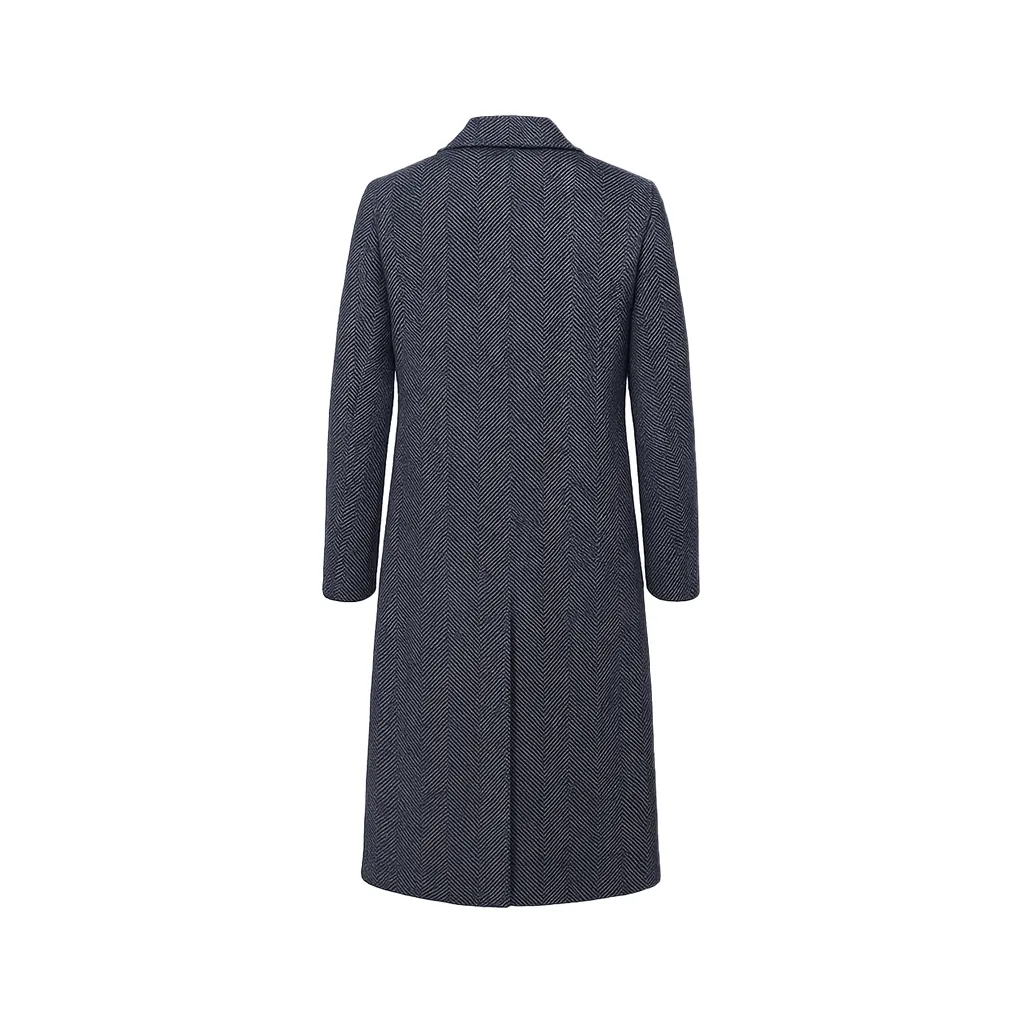 Wool material feels incredibly plush and keeps warmth locked in during cold days. Lapel collar adds a touch of elegance to overall look. Fit is comfortable and looks polished.