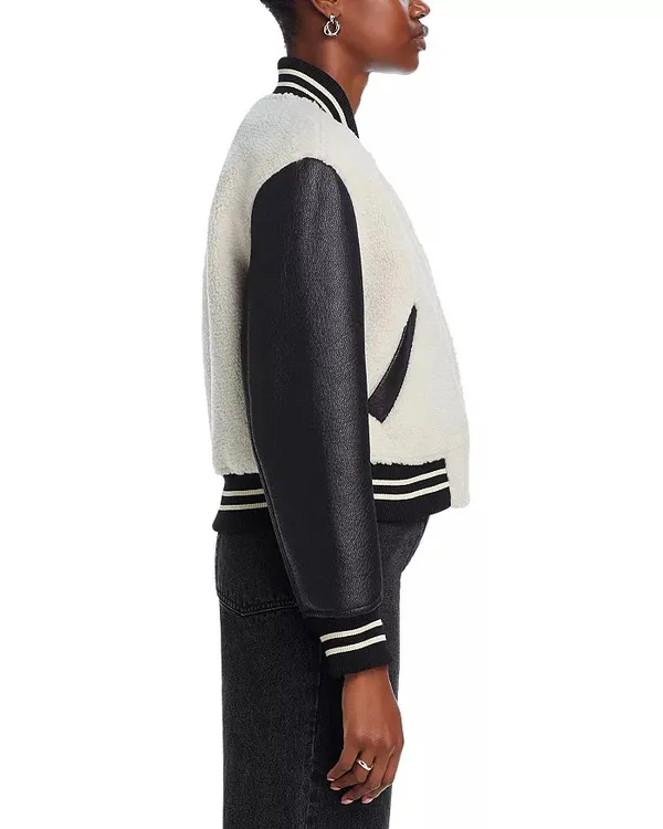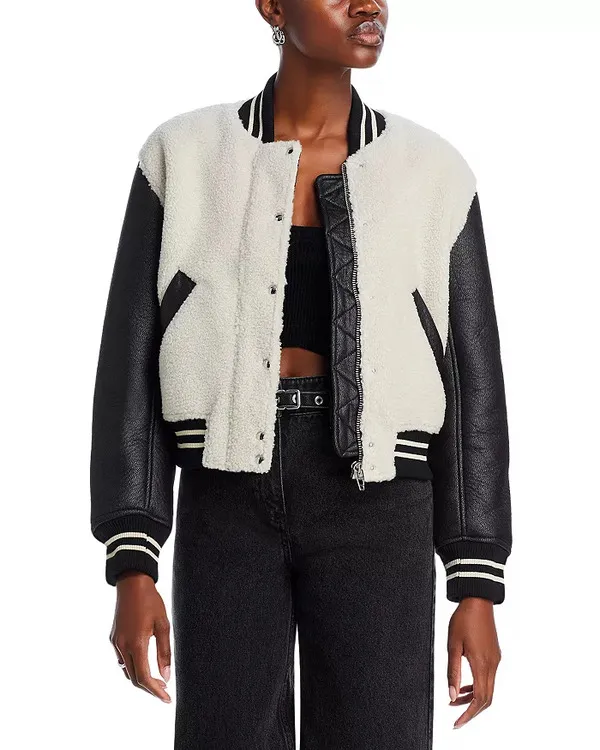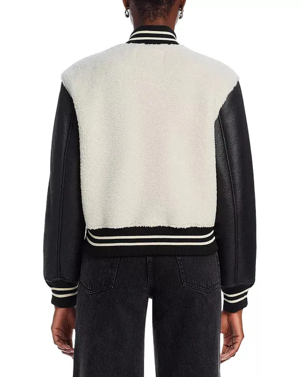 NCIS Season 22 2025 Leather Sleeves Color-block Faux Fur Bomber Jacket