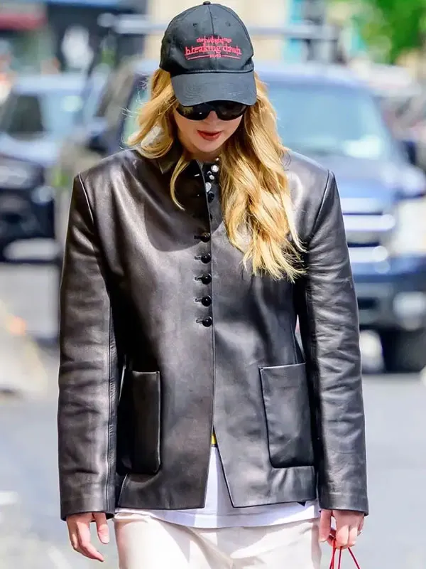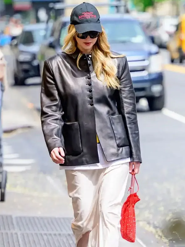 American Actress Jennifer Lawrence Street Style 2025 Black Leather Blazer