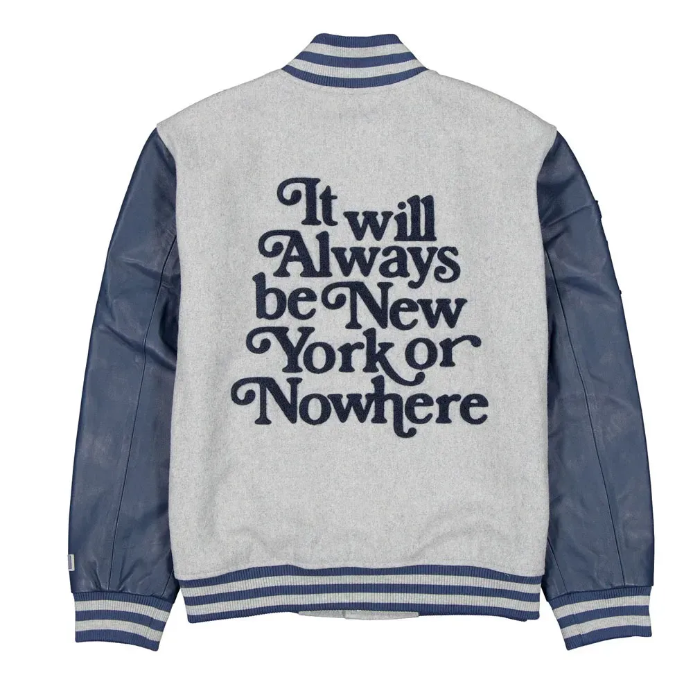 New York Or Nowhere Gray and Navy Varsity Jacket