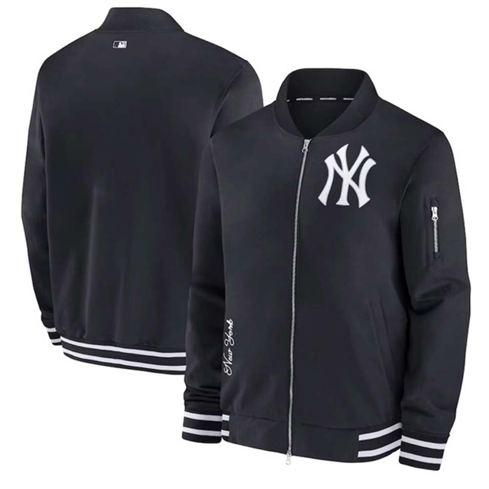 Perfect for Yankees fans! The design is sharp, and the fit is just right. The rib-knit collar and cuffs add a nice sporty touch.