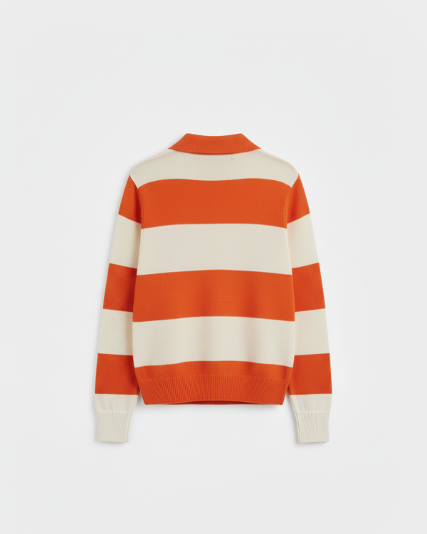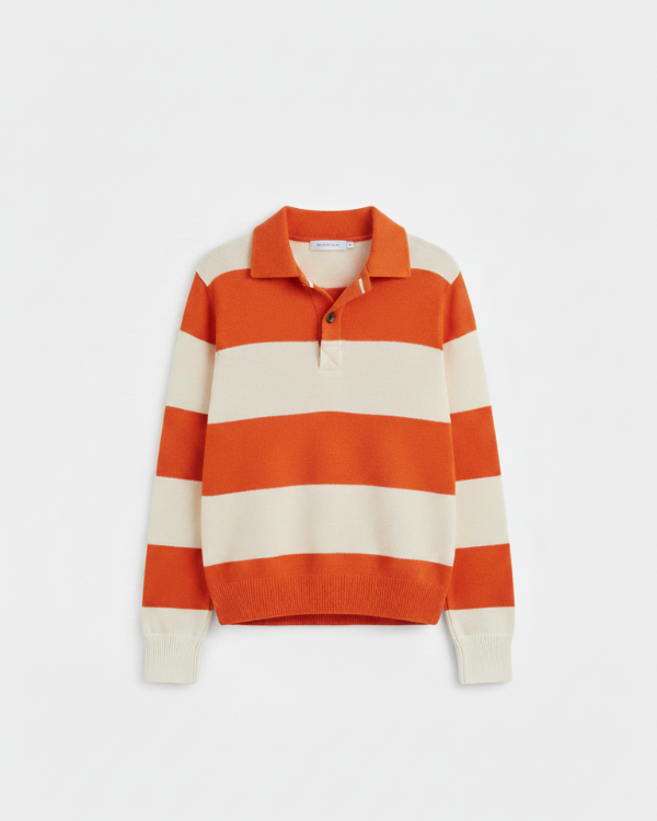 The orange and white colors are lively and cheerful. The full-length sleeves provide ample coverage, making it ideal for layering during colder months.