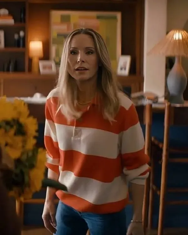 The function of Joanna is portrayed by way of manner of using Kristen Bell inside the collection, and she’s outdone herself! This Nobody Wants This Kristen Bell Striped Shirt is a few thing that each female would really like to get her arms on. The blouse is manufactured from wool mixture cloth and is coated with viscose lining on the inner, for every comfort and breathability. The Cuban style collar with button placket reaches proper proper right down to a pull-on closure for handy put on. The lengthy sleeves emerge as with rib knitted cuffs and the ribbed hem keeps it close to your frame. The orange and white striped sample looks lovable and catchy.