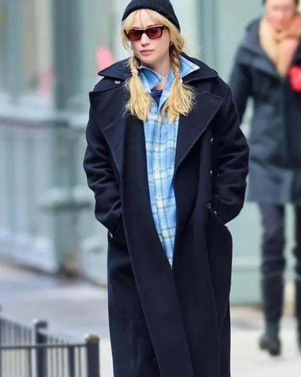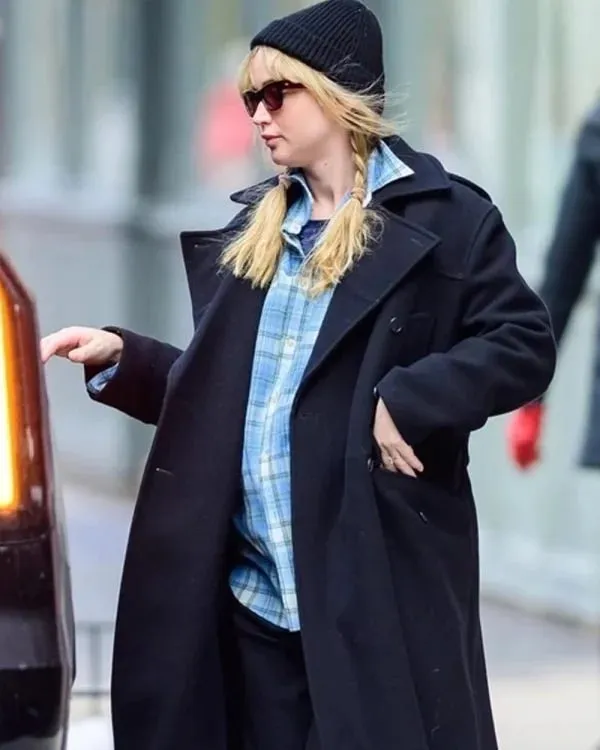 NYC Jennifer Lawrence Black Coat combines timeless style with modern sophistication, making it an ideal choice for anyone looking to elevate their wardrobe. It draws inspiration from high-end fashion, designed to offer both elegance and functionality. Whether worn for casual outings or more formal gatherings, the coat provides a refined appearance, allowing the wearer to stand out in any setting. Its sleek, classic design ensures that it remains a versatile piece that can complement various looks, from business attire to weekend wear.