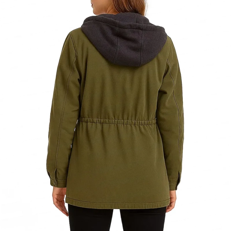 Wearing this jacket for extended periods of time is comfortable due to its soft and long-lasting cotton construction. It is available in a vibrant green hue that is both fashionable and simple to coordinate with other outfits. The jacket’s hooded collar provides additional protection from the cold and wind. It features an easy-to-use buttoned front fastening that holds the jacket firmly in place. The long, form-fitting sleeves have rib-knit cuffs at the end to keep the cold out and ensure a snug fit. The jacket has two exterior pockets and two additional interior pockets for convenient storage of small items. This jacket is a fantastic alternative for anyone searching for a dependable and stylish outerwear solution because it blends comfort, functionality, and style.