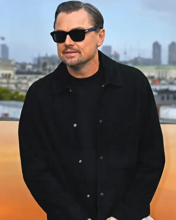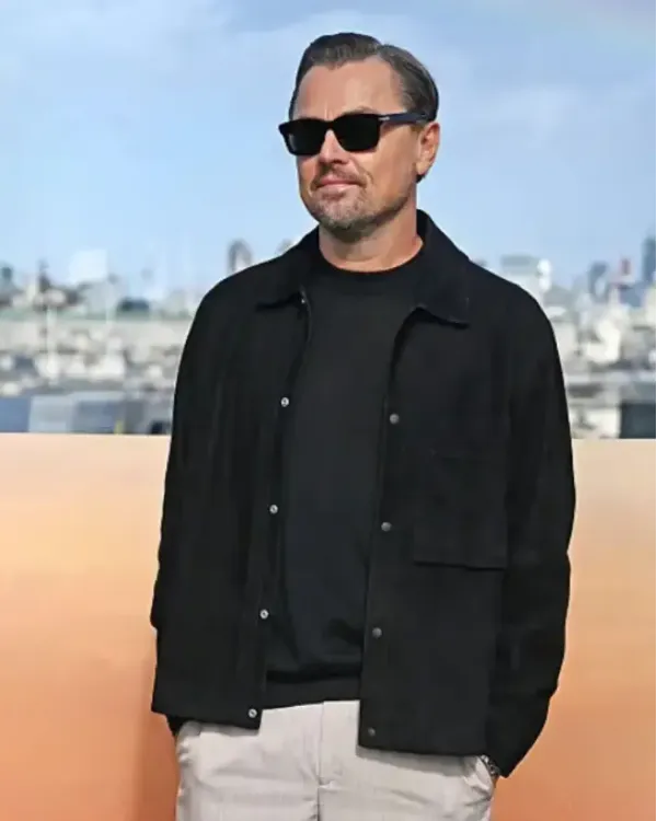 Inspired by the well-known actor’s fashionable appearance, we present the Leonardo DiCaprio One Battle After Another Bob Ferguson Leather Jacket. Fans who wish to emulate Leonardo’s cool, self-assured style will love this jacket. It is comfortable to wear all day because it is made of soft suede. Its black hue makes it adaptable and simple to pair with various ensembles. This jacket will make you look put together and stylish whether you are going out with friends or to a laid-back gathering.