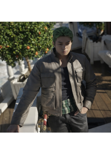 One Piece S02 Mackenyu Roronoa Zoro Gray Leather Jacket