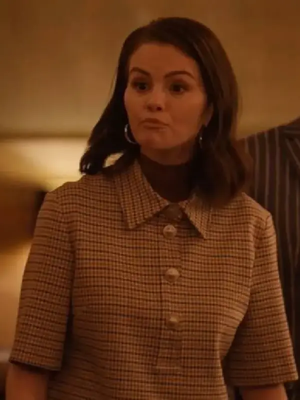 Only Murders in the Building S05 Selena Gomez Polo Top is inspired by the chic and casual outfits worn by Selena Gomez as Mabel Mora in Season 5 of the popular show. Throughout the series, Mabel’s style is bold yet simple, often combining comfort with fashion. This beige polo top, worn by Selena, is a perfect example of her stylish, laid-back look. If you’re a fan of the show or just love casual but trendy clothing, this top is a great addition to your wardrobe.