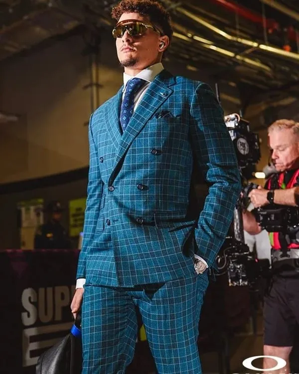 Patrick Mahomes Super Bowl LIX Blue Check Suit
