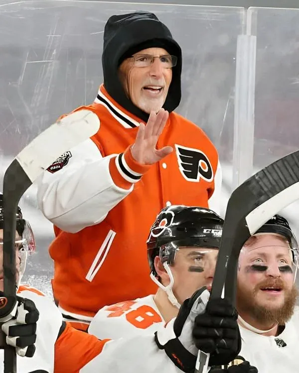 John Tortorella is renowned for his fierce leadership, audacious demeanor, and intense love of hockey. He is a well-respected coach who has motivated players and supporters with his commitment and self-assured approach. He exudes pride, focus, and resolve both on and off the ice. Supporters adore his direct demeanor and strong energy, which never fails to impress. His iconic game-day look served as the inspiration for this Philadelphia Flyers Stadium Series Jacket, which allows fans to confidently dress while expressing their team loyalty. it essence of true hockey fans who appreciate vintage sportswear with a contemporary twist. This jacket adds a sporty touch to your regular attire and is a great way to support your favorite team.