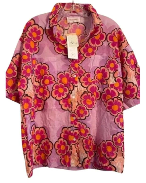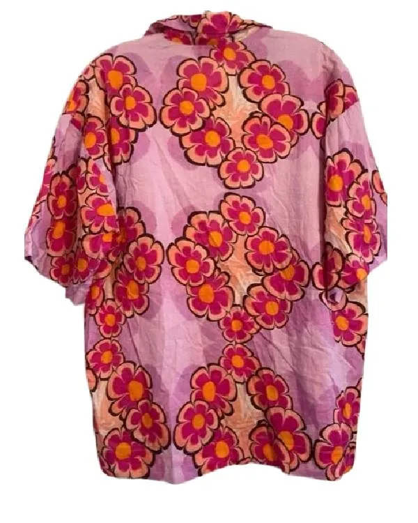 Seth Rogen Pink Floral Shirt from soft, breathable cotton. The front button closure lets you wear it polished and closed or open over a tee for a relaxed look. A colorful floral print adds a fun, standout touch, while the collar keeps it classic. The half-sleeve design makes it ideal for casual outings and warm weather. A single chest pocket adds both function and flair perfect for small essentials.